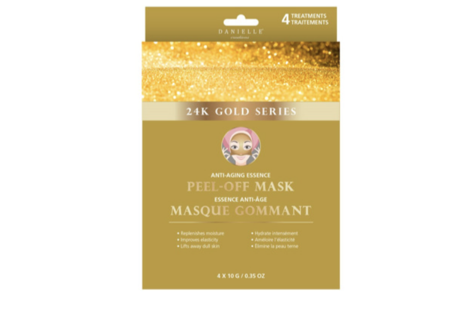 The Danielle Creations 24 K Gold Anti-Aging Peel Off Mask contains regenerating colloidal gold to strengthen and tighten skin, and Ginseng Root Extract to help lighten age spots and blemishes.